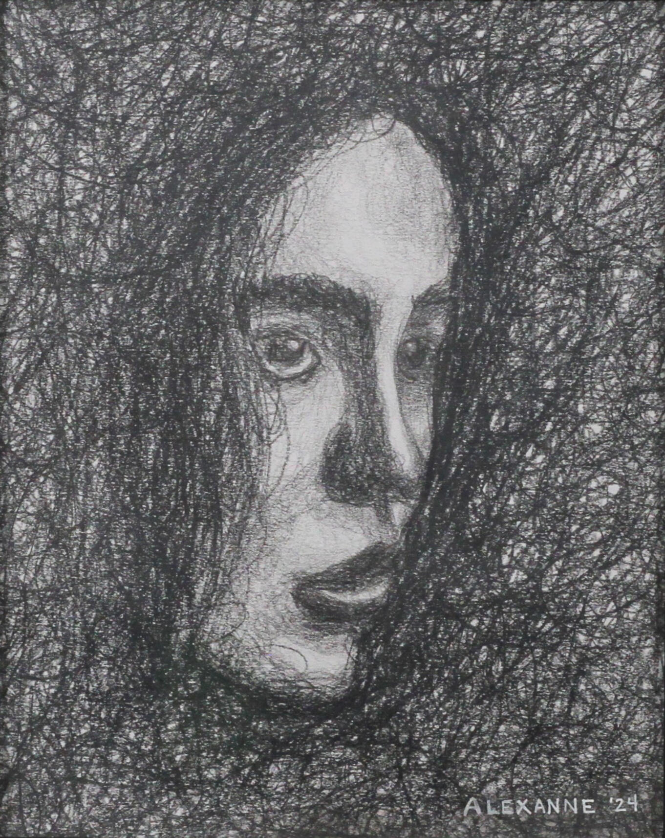 Les émotions qui nous accompagnent lorsque nous faisons face aux difficultés de la vie sont celles qui me captivent le plus. Bien que j’aie du mal à les identifier en moi-même lorsque je les éprouve, j’ai toujours su les repérer chez les autres.Voir d'autres vivre ce que je vis et ressentir les mêmes inconforts que je ressens a toujours été une source d'apaisement.Créer des œuvres qui traduisent ce que je ressens, mais sur le visage de quelqu'un d'autre, puis les accrocher toutes autour de moi a toujours été rassurant.À travers mes œuvres, j'espère pouvoir partager le réconfort que procure le sentiment que quelqu’un nous comprend et qu’on n’est pas seul durant les moments les plus difficiles de notre existence.